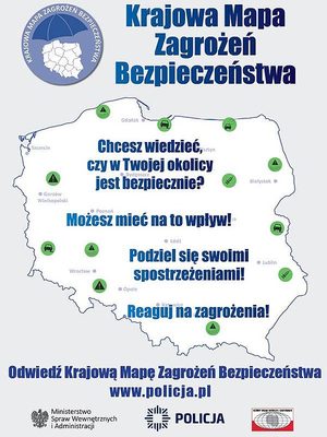 Widzisz w swoim rejonie coś niepokojącego, a może chciałbyś nas poinformować o niepożądanym zjawisku? W przypadkach, gdy nie ma zagrożenia dla życia i zdrowia, możesz skorzystać z Krajowej Mapy Zagrożeń Bezpieczeństwa. To interaktywna aplikacja internetowa dająca każdemu obywatelowi możliwość wpłynięcia na bezpieczeństwo.